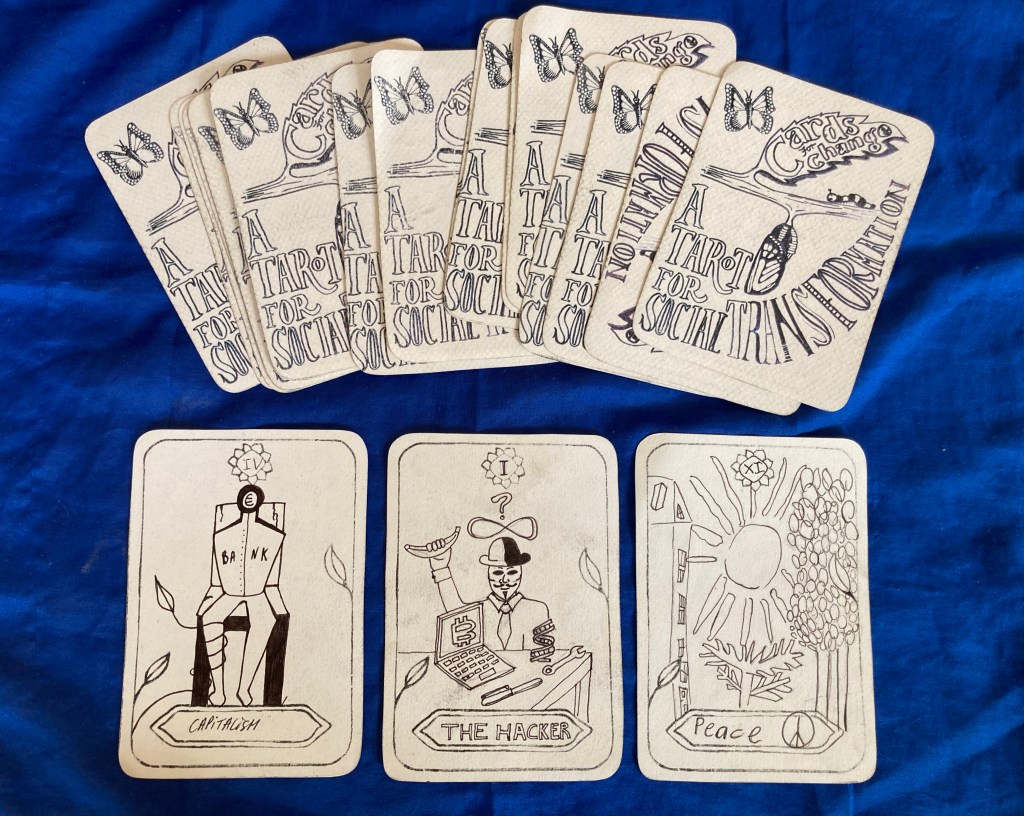 Cards for Change is a crowd-created Tarot for Social Transformation. This unique deck is about envisioning a better world for all, about imagining together and collecting and sharing what works. From March 21st to 24th, we invite you to join 78+ people from around the globe in a creative relay to expand an existing deck developed in previous workshops.
